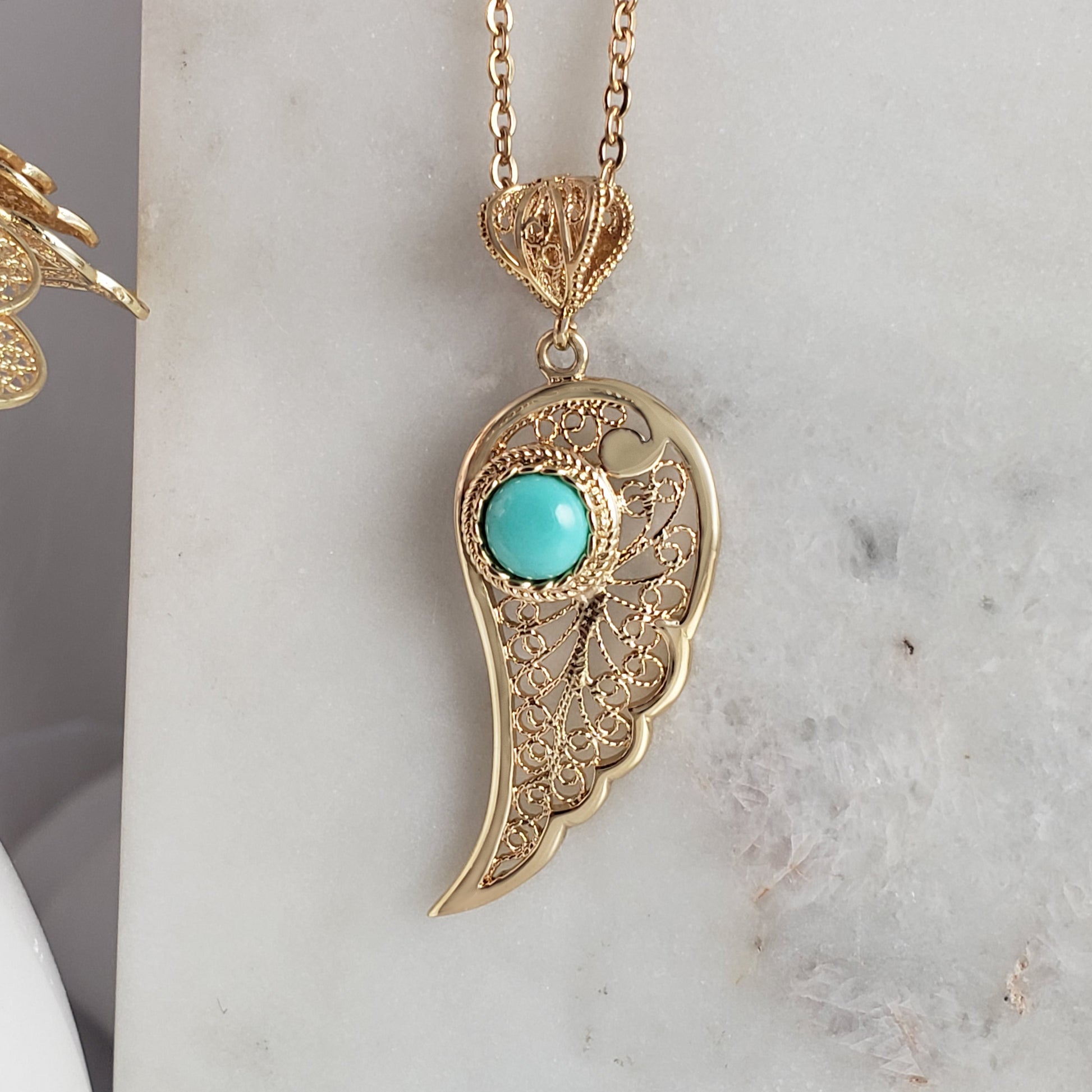 Filigree Angel Wing Pendant with Turquoise Stone