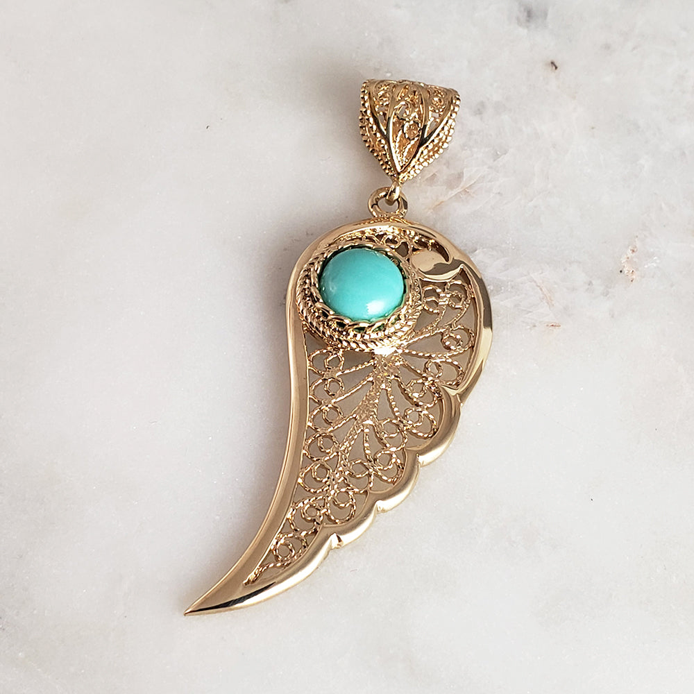 Filigree Angel Wing Pendant with Turquoise Stone