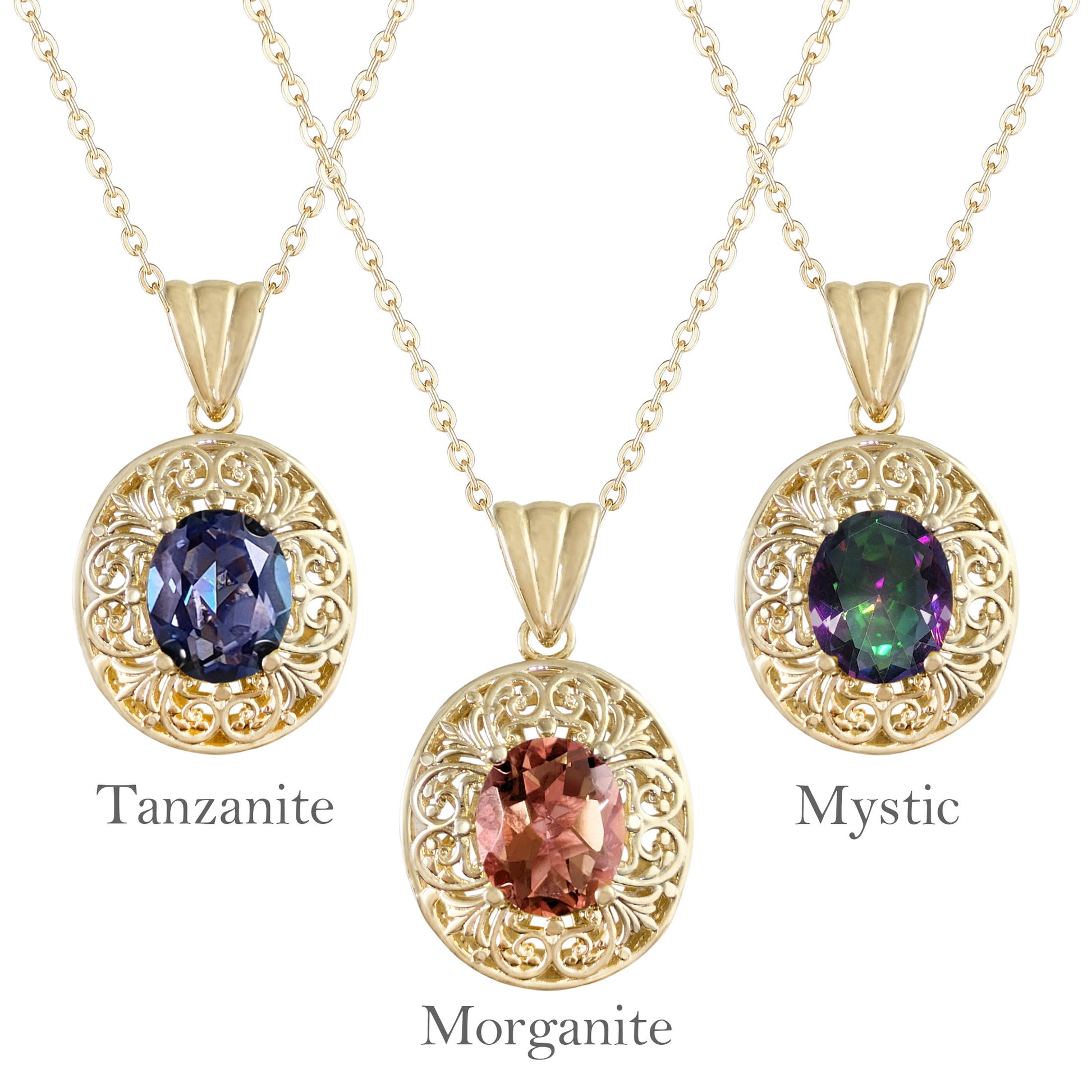 Scrollwork Pendant with Zultanite, Morganite and Tanzanite Colored Oval Quartz Gemstone