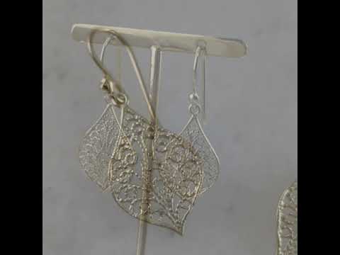 These delicate filigree leaf drop earrings feature an intricate openwork design inspired by nature. With graceful curves and lightweight construction, they provide effortless elegance for any occasion. Handcrafted with fine detail, these earrings are perfect for everyday wear or special events.