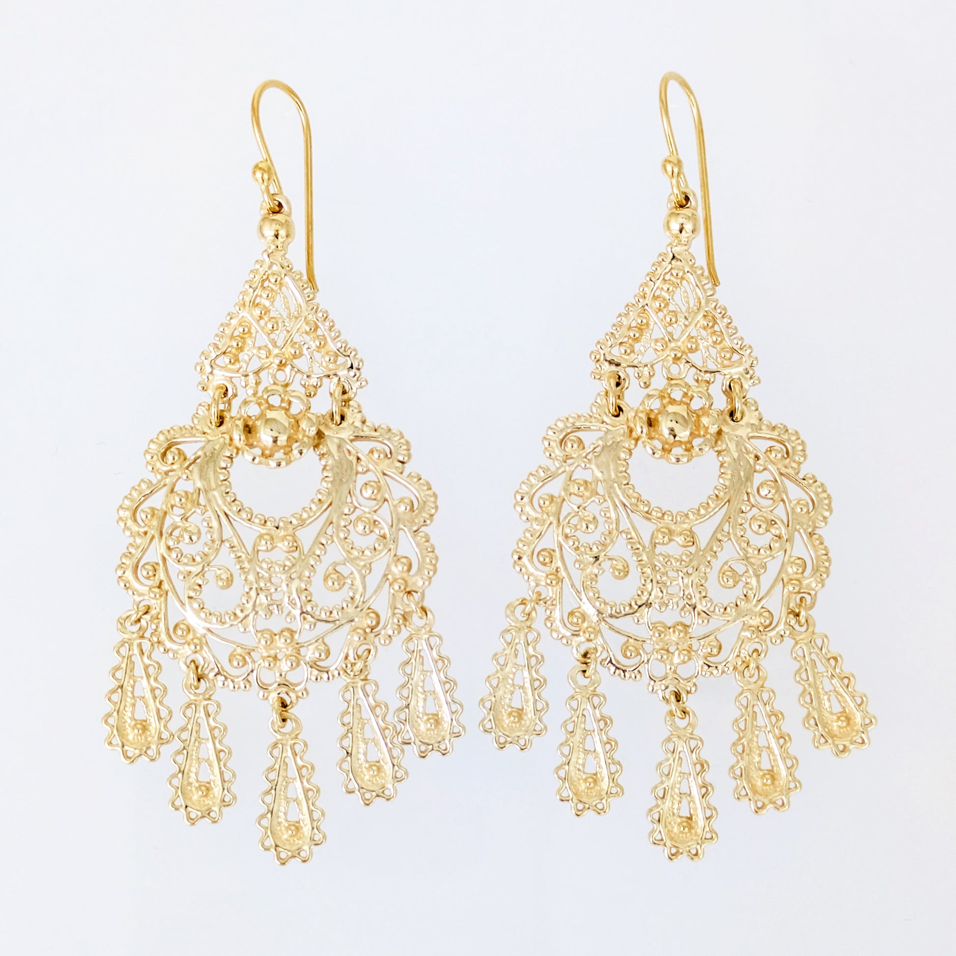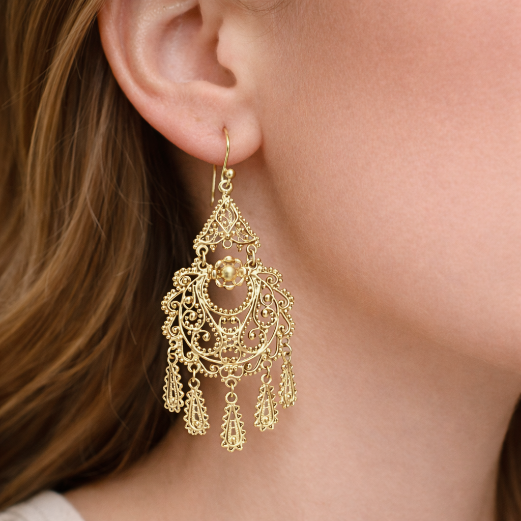 Gold Filigree Chandelier Earrings – Vintage-Inspired 2 3/8 Inch Dangle Earrings