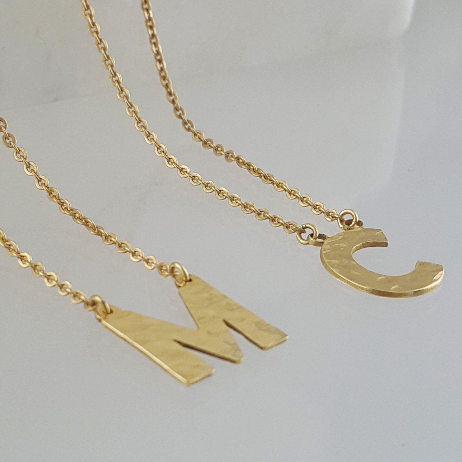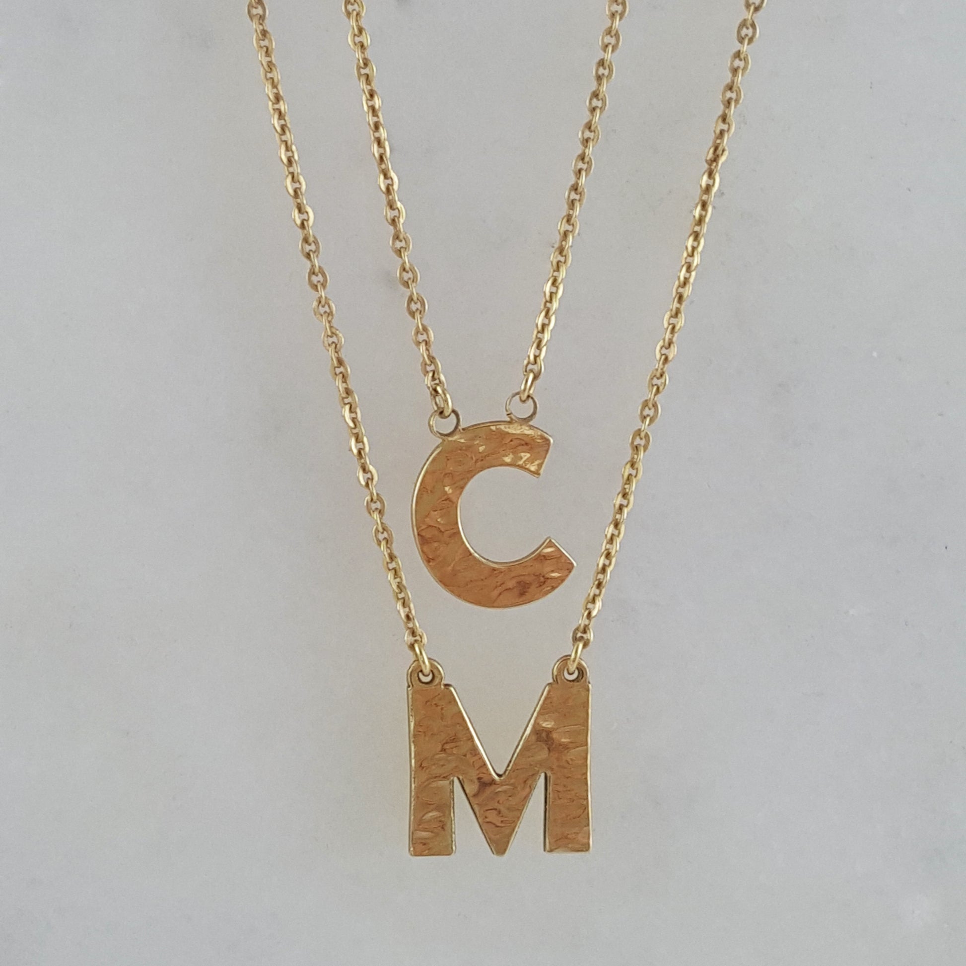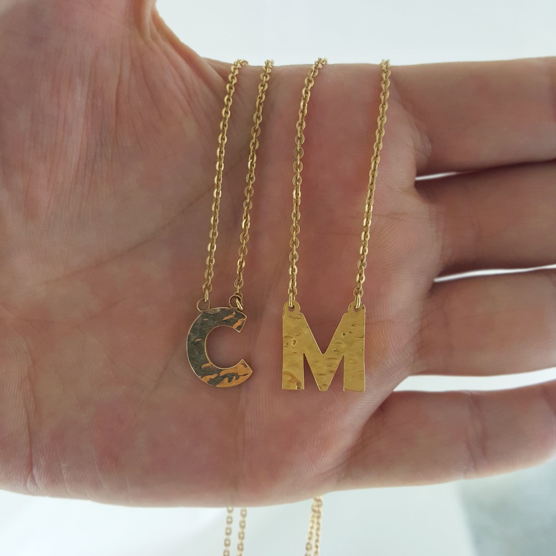 This personalized Initial Necklace is an elegant yet simple accessory that adds a touch of uniqueness to any outfit. The letter charm is made from 18k gold over bronze and features a hammered finish for a distinct, textured look. Its minimalist design makes it perfect for everyday wear or as a thoughtful gift for your girlfriend, wife, or loved one. The necklace’s timeless appeal ensures it will be cherished for years to come.