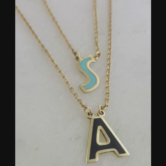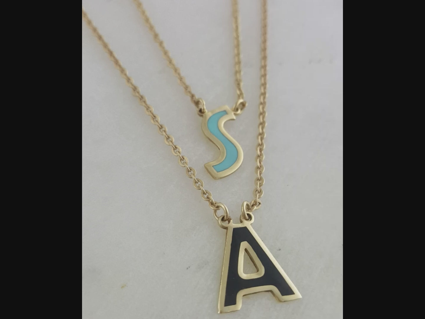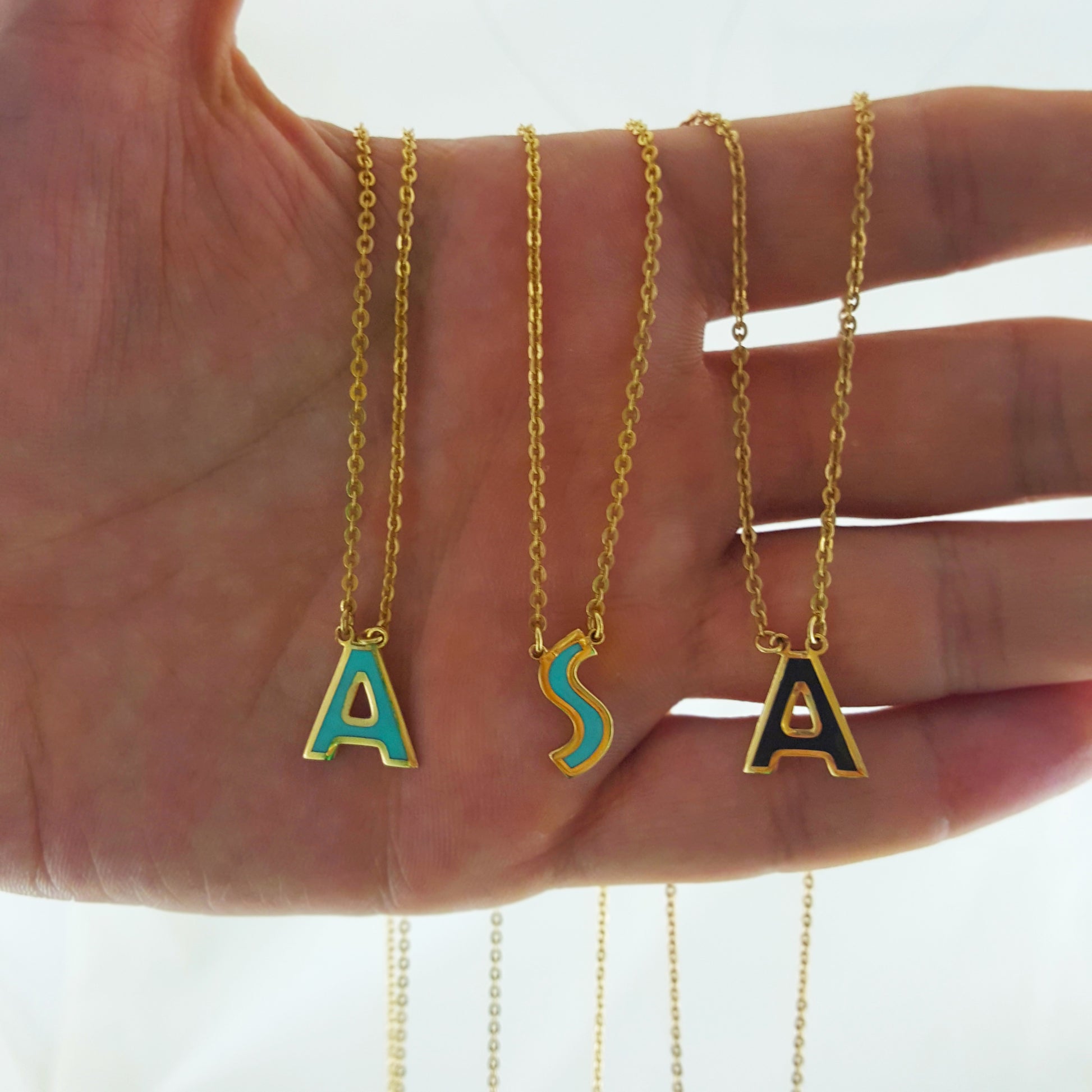 Initial Necklace, Personalized Jewelry ,Gifts for Her, Enamel Necklace 18k Gold Over Bronze